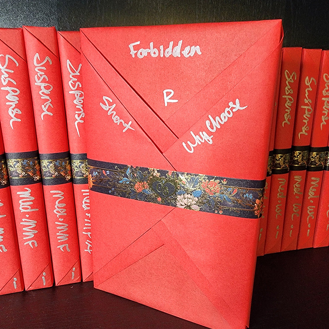 - Artful Presentation: Books are elegantly wrapped in a kimono-style wrap, sealed with custom foiled washi tape bearing Ophelia's logo, enhancing the unboxing experience.